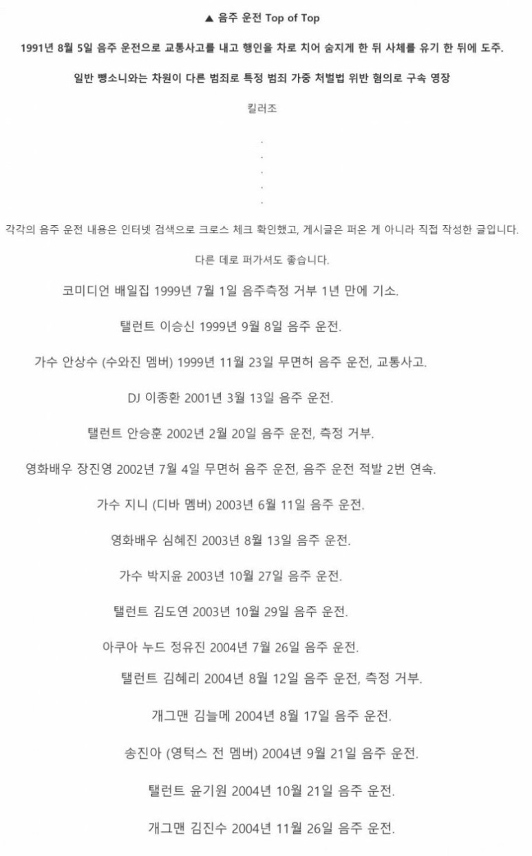 ●리스트 풀버전 연예인, 음주운전