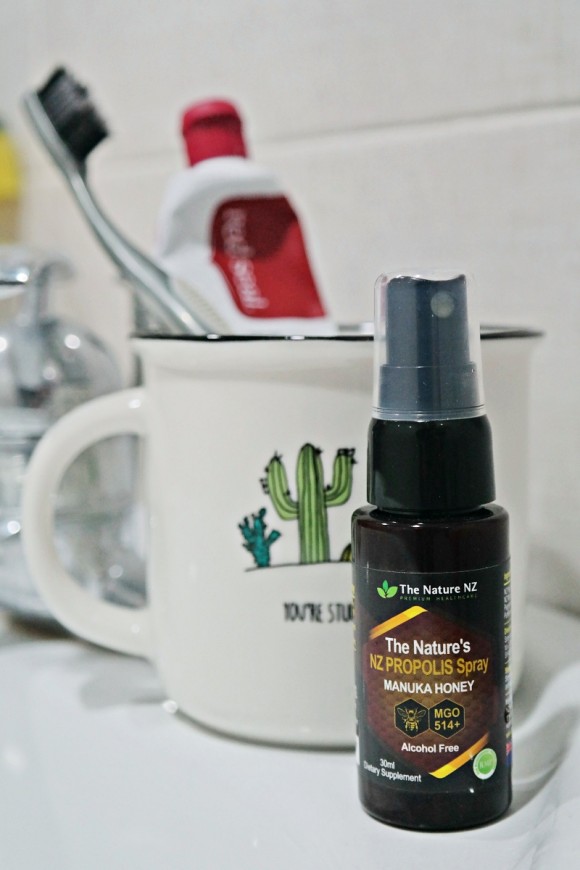 편도 결석을 막고 목의 활력을 유지하는 방법으로 소금물 양치질도 아주 좋은 방법이에요. 예전에 목이 아플 때 할머니는 꼭 소금물 한 사발을 넣고 목을 가글하라고 알려주셨어요. 아침저녁으로 미지근한 물로 소금물을 만들고 가글을 하면 목에 생긴 염증이 가라앉아 통증이 줄어드는 경험을 많이 했어요. 염수 가글은 편도 결석 예방에도 최적입니다.프로폴리스 스프레이