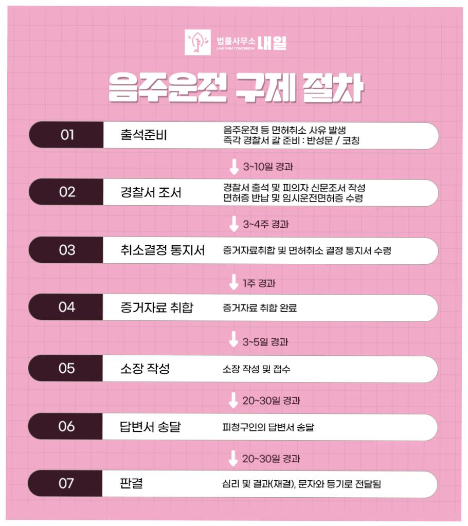술을 마시고 운전을 한 것에 대해 형사처벌의 위기에 몰렸다면 과거와는 달리 선처를 받기가 매우 어려워졌다는 사실을 명심해야 한다고 말했습니다. 또한 면허의 취소 또는 정지를 구제받기 위한 행정절차에 대해서도 개인이 신청하기에는 무리가 있어 난관이 발생할 가능성이 있다고 하였습니다.