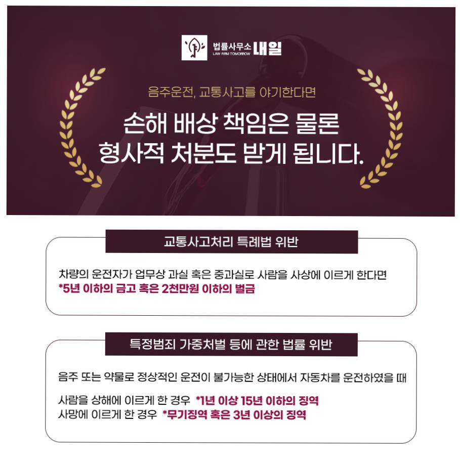 법에서 규정하고 있는 사항을 위반해서 다른 사람에게 피해를 끼치면 처벌을 받을 수 있다고 했어요 알코올 성분이 함유된 음료를 마시고 취한 상태에서 스스럼없이 차를 운행하는 사람들이 많다고 했는데요. 하지만 이건 단순한 불법 행위라는 것을 인지해야 한다고 했어요.