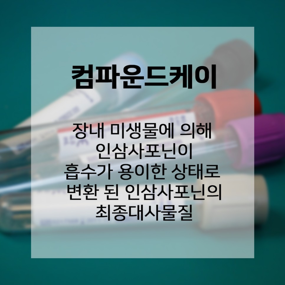 이 물질에 대해 간단히 설명하자면, 인삼의 사포닌이 장의 미생물을 통해 변환된 최종 대사물질입니다.인삼이나 홍삼을 먹으면 몸속에서 변환이 되고 흡수되지만 중요한 것은 장내 환경이 다른데다 미생물이 없는 사람도 있어 변환이 안된다는 것입니다.변환이 되지 않으면 흡수되지 않고, 효과도 나오지 않습니다.실제로 식약처 보도자료를 찾아보니 한국인 네 명 중 한 명은 아예 흡수되지 않는다고 하네요.그만큼 홍삼과 인삼은 우리에게 큰 효과를 주지 못한다고 할 수 있습니다.이 컴파운드 케이크를 드시면 쉽게 흡수 가능하며 남녀노소 누구나 드실 수 있기 때문에 가족이 함께 드시면 좋다고 합니다.