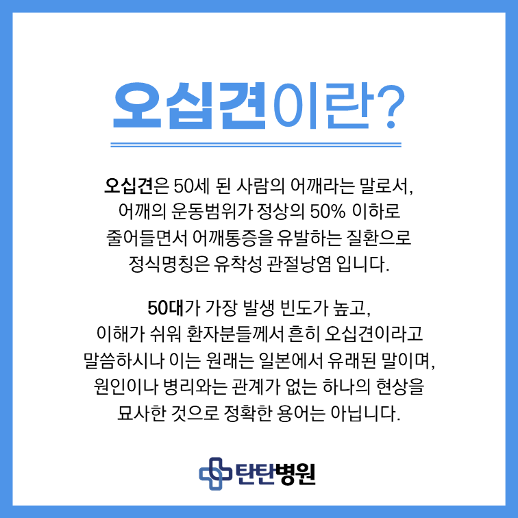 50대에 많이 나타나는 증상인데, 지금부터는 2~30대의 젊은 층도 많이 나타나고 있는 오십견에 대해 알아보도록 하겠습니다.오십견이란❓