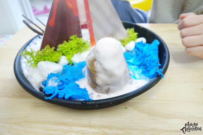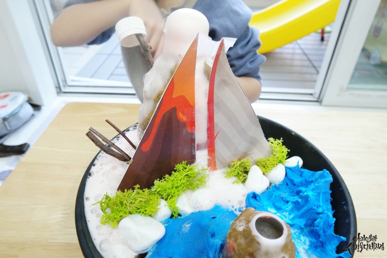 보글보글 올라오는 화산을 보면서 신나게 놀거나 읽은 책을 떠올리며 이야기를 하면 아이가 더 잘 이해한 것 같아요.