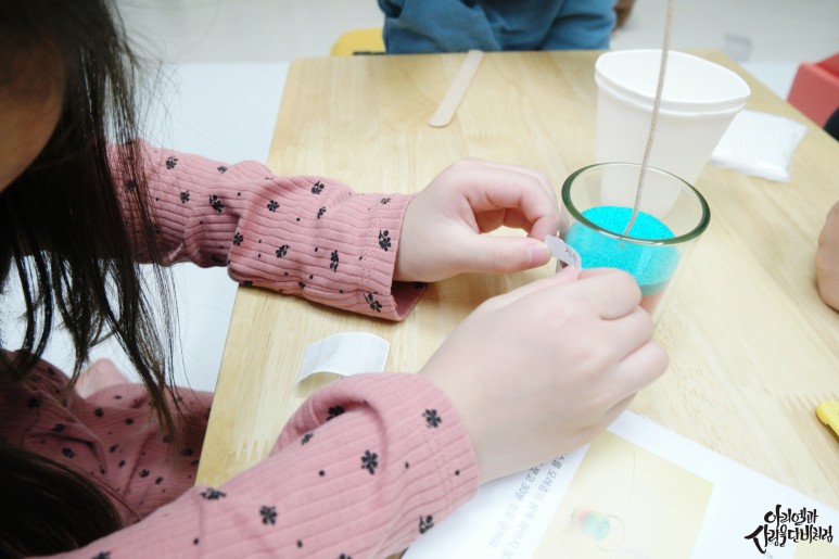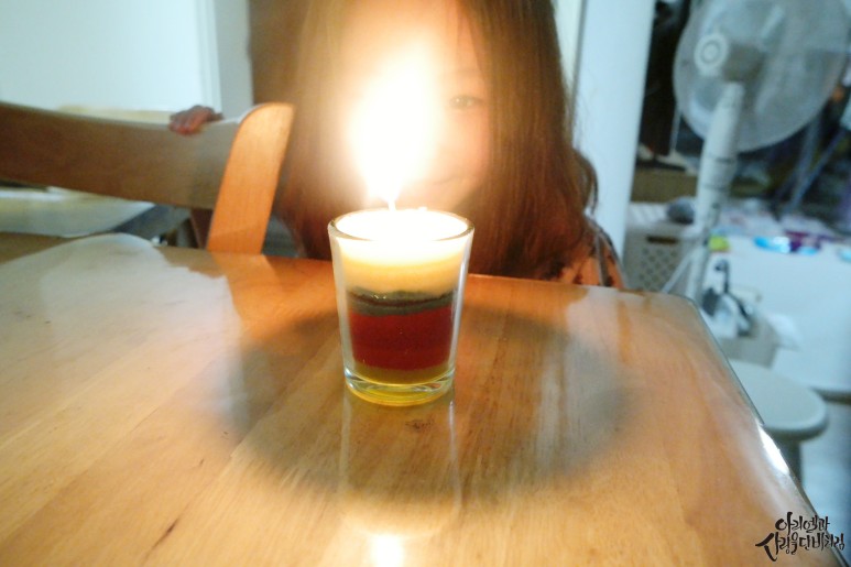 녹인 초를 붓고 굳을 때까지 기다리면 끝!만들면 밤이니까 촛불도 켜보고 아이들이 정말 활동하면서 신나고 즐거워하는 걸 봤어요.그리고 자녀에게 지식도 쌓게 해줍니다.