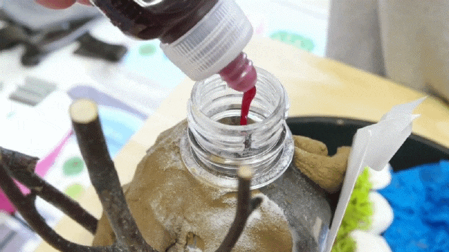 용암을 표현하는 딸기 레진 더 잘 분출할 수 있게 주방 세제도 넣어주고