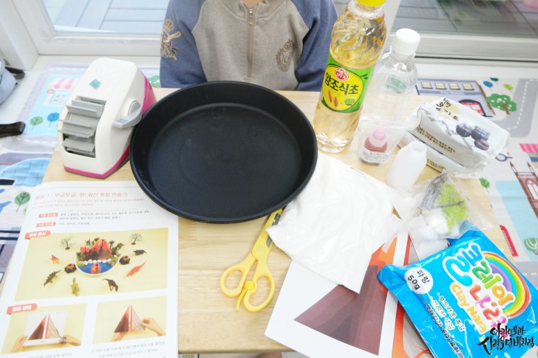 활동 가이드를 보면서 마그마가 나오는 길을 만들고, 큰 화산도 만들어 주고, 해저 화산도 만들어 주는데 클레이와 옹기트로, 아이들의 오감에도 아주 좋은 홈키트였습니다.
