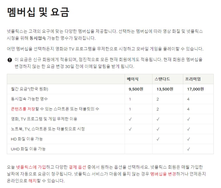 스탠다드는 12.99달러에서 13.99달러로.프리미엄은 15.99달러에서 17.99달러로 올렸다.