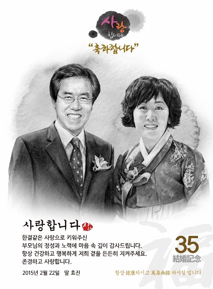 요청하신 날짜에 맞춰서 작가님이 예쁘게 제작해서 보내주셨어요~ 부모님이 같이 찍은 사진을 찾아보니까 요즘은 코로나 때문에 계속 마스크를 쓰고 있어서 얼굴이 제대로 나온게 없었어요.옷도 알록달록 ㅋㅋㅋ작가님이 최대한 이쁘게 수정해주셨어요 ㅋㅋㅋ