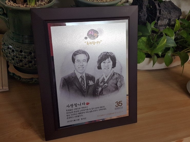 올해는 특별히 부모님이 결혼하신 지 35년째 되는 해이기 때문에 뭔가 특별한 선물을 하려고 생각하게 되었습니다.뭐할까 가족사진 찍을까? 리마인드 웨딩? 여러가지 고민해봤는데 좀 과장된거 같아서 용돈주는거 타협 ㅋㅋ 요즘 빠져있는 아이디어스로 이것저것 검색해서 드로잉액자 이쁜거 같아서 주문!