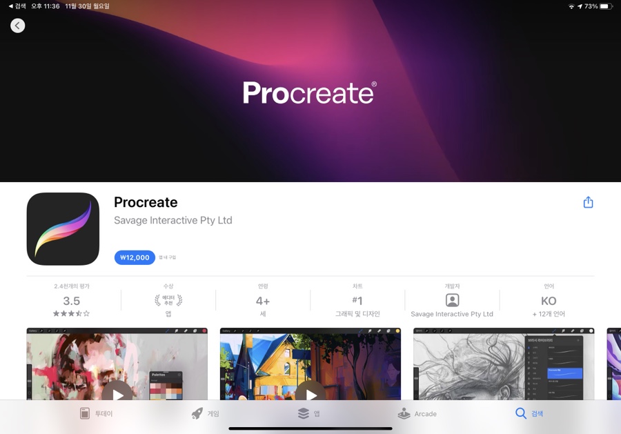 3. Procreate (12,000원) iPad 를 구매하시는 분들의 로망입니다. 그림 그리기 어플리케이션! 사진을 읽고 정성스럽게 그려주면, 일러스트 느낌으로 완성됩니다. 스케치북 어플도 많이 쓰지만 저는 확실히 섬세함이 달라서 프로 크리에이트가 좋아요.