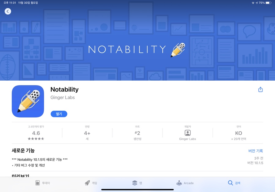 2. Notability (17,000원) 2 .. 기본 메모장도 좋지만 보다 편리하게 사진을 읽고 카테고리화하여 정리할 수 있다.논문 pdf를 읽어와서 밑줄 치면서 읽는것도 정말 좋아.
