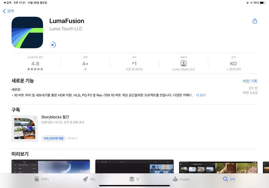영상 편집 어플인데 유료다! 근데 영상 편집을 위해 아이패드 구매하신 분이라면 추천이다 나도 지금 공부 중인데 손가락으로 자르는 편집이 가능하고 애플 펜슬에서 클릭을 통해 모든 것이 가능하다. 가장 귀찮은 것은 컷 편집과 자막 넣는 것인데, 그게 편하니 정말 좋다. 그리고 쉽다! 속도 조절부터 영상 읽기, 효과 넣기 모든 게 쉬웠다