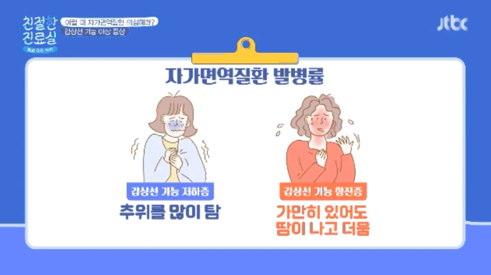 이럴 때 자가면역질환을 의심해? > * 갑상선 기능 이상 : 온도에 민감함, 피로감, 우울감
