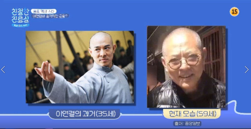 홍콩 출신의 톱스타 이연걸씨는 10년 이상 자가면역질환인 갑상선기능항진증을 앓고 있습니다.갑상선 호르몬이 과다 분비되어 신진대사가 지나치게 높아지는 질환으로 노화와 탈모가 빨리 진행되고 용모 변화도 빠릅니다.