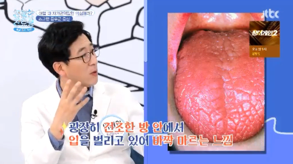 셰이그렌 증후군 환자가 느끼는 증상은 매우 건조한 방안에서 입을 벌리고 있기 때문에 바싹 마르고 상상할 수 없을 정도로 심한 통증을 유발하는 질환입니다.