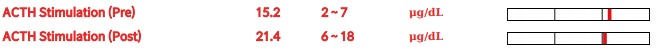 Progesterone, 17-hydroxy progesterone(17-OHP) 등은 비정형성 쿠싱 증후군을 진단할 때 이용됩니다.환자의 Progesterone 수치는 비정형성 쿠싱증후군으로 진단될 수 있는 수치입니다.