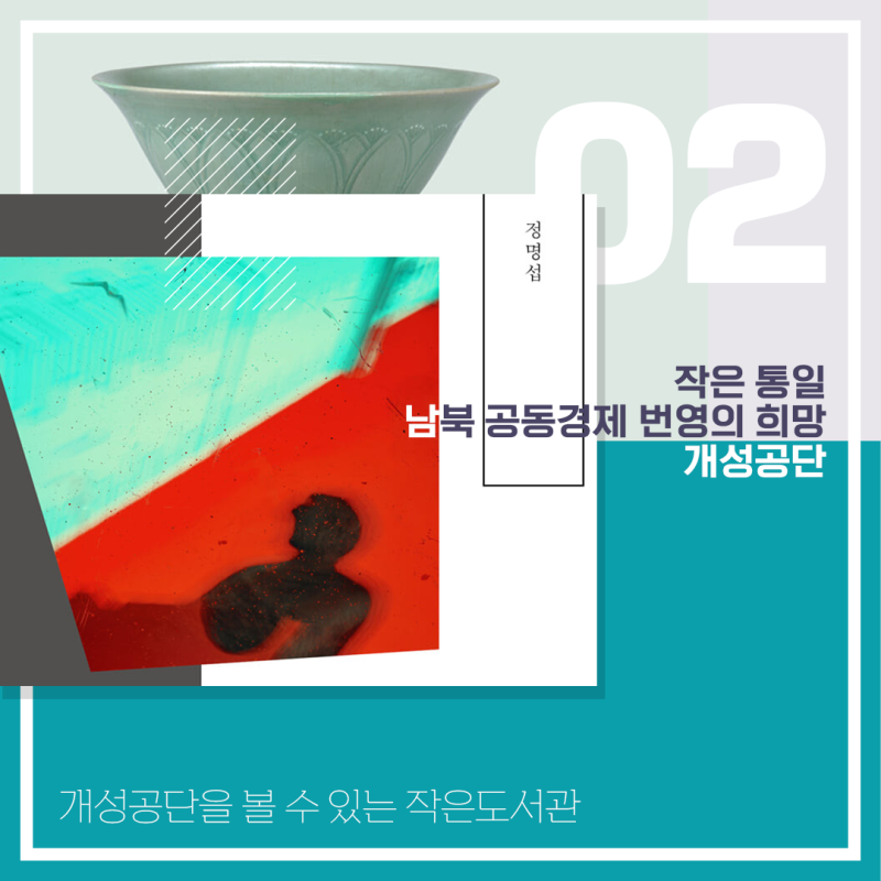 개성공단은 1998년, 6월과 10월 두 차례에 걸쳐 정주영 현대그룹 명예회장이 소떼 1001마리를 이끌고 판문점을 넘어 북한을 방문한 <소떼 방북>을 계기로 이뤄졌다. (통일식당 개성식탁_정혜경)’ 책을 통해 고려 500년 수도 개성과 한반도 공동번영기지 개성공단에 대해 알 수 있는 ‘작은도서관’이 운영되며 개성공단이 가진 평화와 번영의 가치를 공유할 수 있는 ‘개성공단 바로 알기’ 애니메이션도 감상할 수 있습니다.