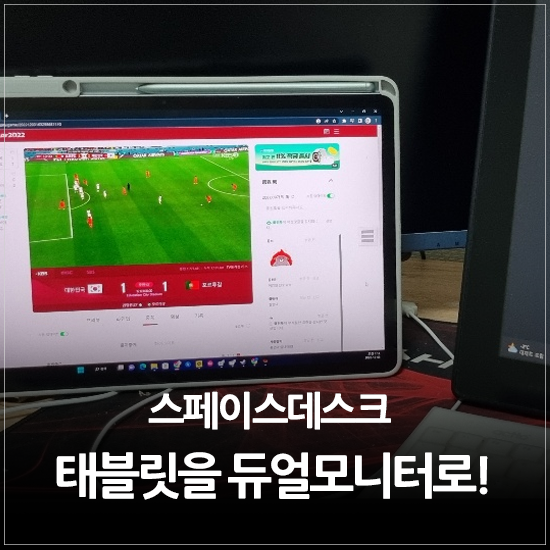 게다가 저도 이 포스팅을 쓰면서 스페이스 데스크에 PC 화면을 띄워놓은 갤탭으로 대한민국 VS 포르투갈전을 보고 있습니다. 평소 같으면 더 일찍 쓰고 다른 포스팅을 찾던 시간인데 스페이스 데스크가 무료임에도 불구하고 넘치는 역할을 해주고 있어 축구에 집중하도록 할게요. wwww 그런 의미에서 이쯤에서 글을 마무리하도록 하겠습니다. 여유DP선이없어서스페이스데스크에급하게듀얼셋팅을해서쓰는데아,이거생각보다너무좋다!이렇게자연스럽게나오네요. 강력 추천드려요! [email protected]