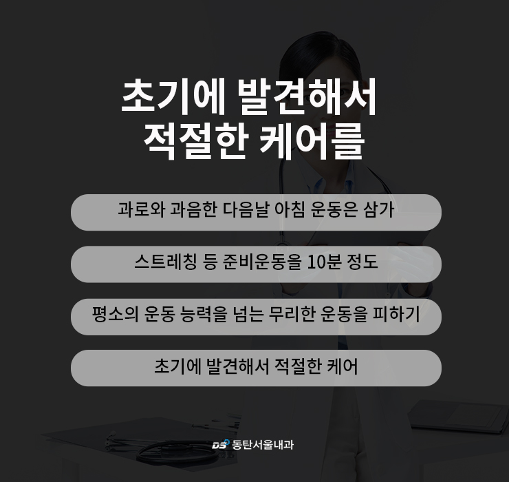 혈압은 보통 잠에서 깨어나는 새벽에 높은데 따라서 새벽 찬공기에 노출되면 혈압이 순간적으로 상승해 심근경색 등 치명적인 응급상태가 될 수 있습니다. 춥다고 운동량을 줄이기보다는 과로와 과음한 다음날 아침 운동은 삼가시고 보온에 충분히 도움이 되는 편안한 옷을 입으세요. 또한 스트레칭 등 준비운동을 10분 정도 충분히 하고 평소 운동능력을 초과하는 무리한 운동을 피합니다. 새벽보다는 해가 뜬 오전이나 오후에 하면 더욱 안정적으로 건강관리를 할 수 있어요. 동탄 동맥 경화로 살펴보면 어떤 증상이라도 초기에 발견하여 적절한 케어와 생활 관리가 더해지면 더 빠른 회복을 할 수 있습니다. 그러나 많은 분들이 몸에서 보내는 적신호를 무시하고 자가 진단을 내리려고 합니다. 이렇게 되면 시간이 흐를수록 증세가 심화되고 치료 과정이 복잡해질 수밖에 없기 때문에 서둘러야 합니다.대학병원급 최첨단 의료장비로