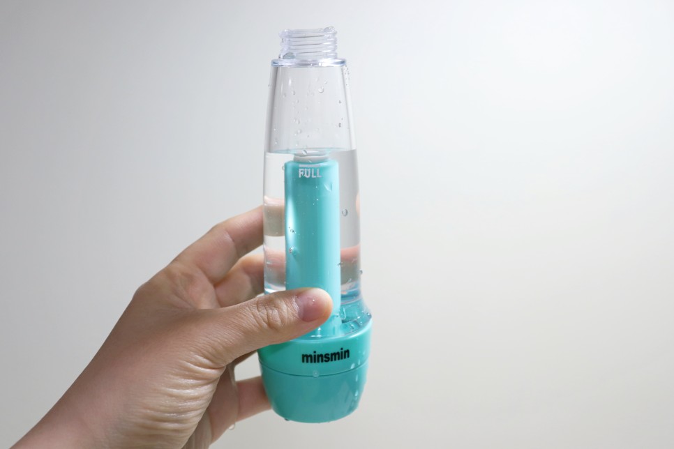 제품 조립을 다 하면 이렇게 생겼네요민트색 제품이 대용량이라고 들었는데 확실히 물의 양이 많이 들어가서 더 편하답니다.