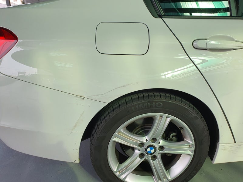 파손된 부품을 제거한 후 판금 작업을 진행하였습니다.