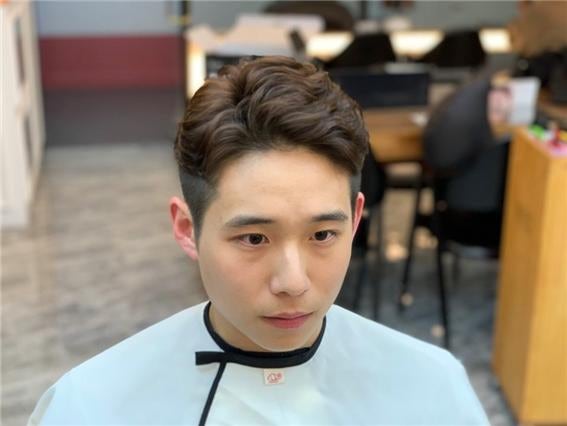 특히 남성펌 헤어 중에 중요한 게 얼굴형에 맞는 볼륨과 다운의 조화잖아요.어느 정도를 살려서 죽이느냐에 따라서 같은 남자의 머리라도 멋있어지거나 촌스러워 보이기도 합니다.아이롱 포마드 펌을 하면서 구레나룻 옆머리의 짧은 부분은 약으로 다운되어 자연스럽게 연결하였습니다. 진짜 문 선생님은 섬세함의 라스보스 같아요. 연결선이 너무 자연스러워서 정말 대견하고 만족합니다.