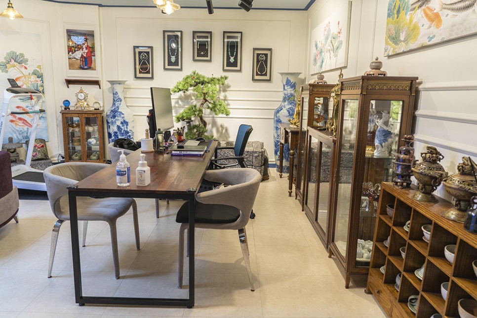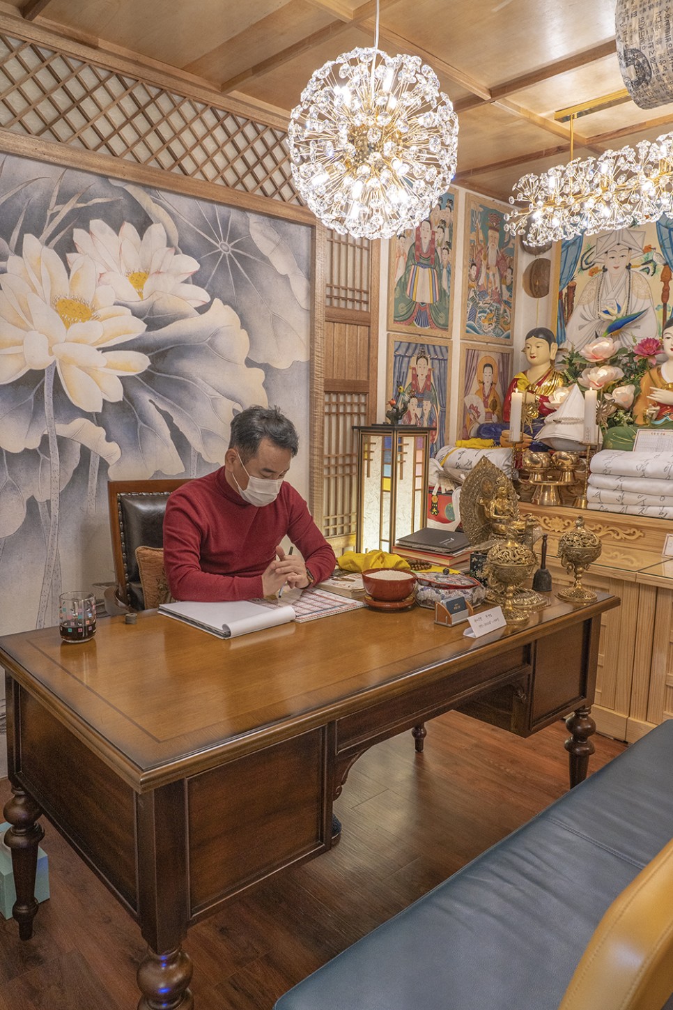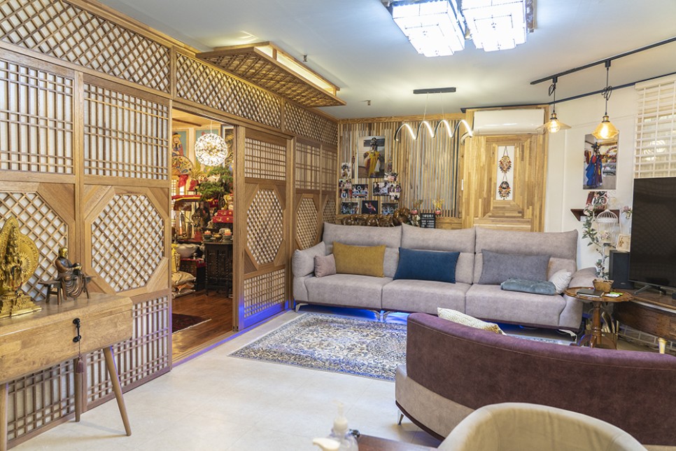 신당을 떠올리면 언제나 고풍스러운 분위기가 떠오르지만 모던한 가구들이 고풍스러운 소품들과 어우러져 세련되고 앤티크한 분위기였습니다.