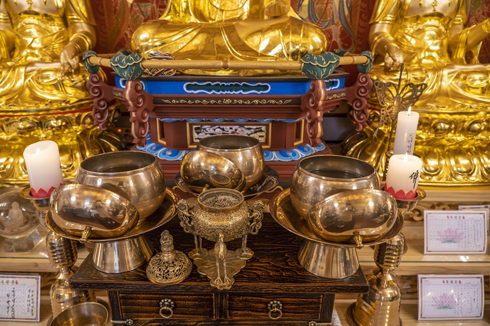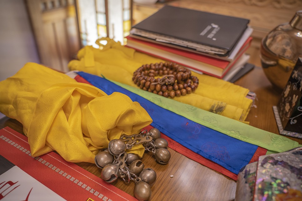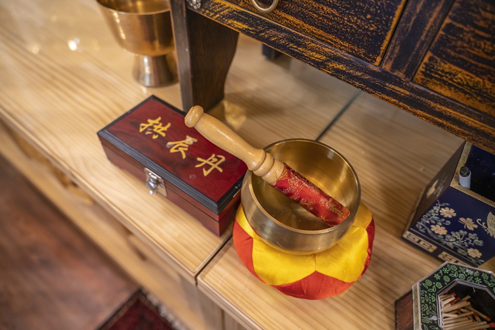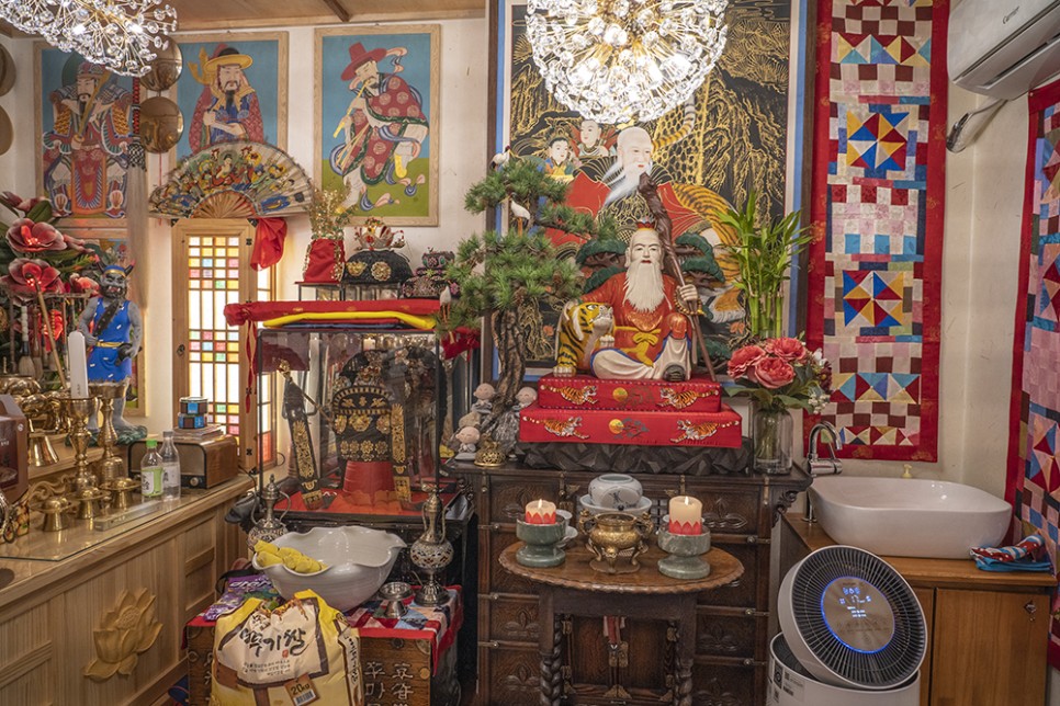 내실에 들어서면 비로소 신당에 온 기분이 드는데, 눈꽃 조명이 아름답게 비치고 불상이나 신당의 소품들이 반짝반짝 빛나고 있었습니다.