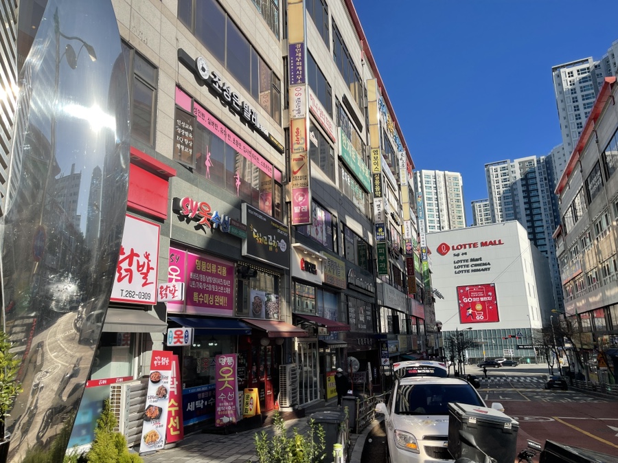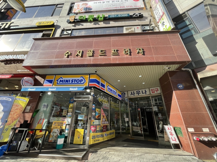 롯데몰 수지점 건너편에 있는 골드플라자.골드플라자 입구가 여러 개 있는데 같은 한 건물이었습니다.
