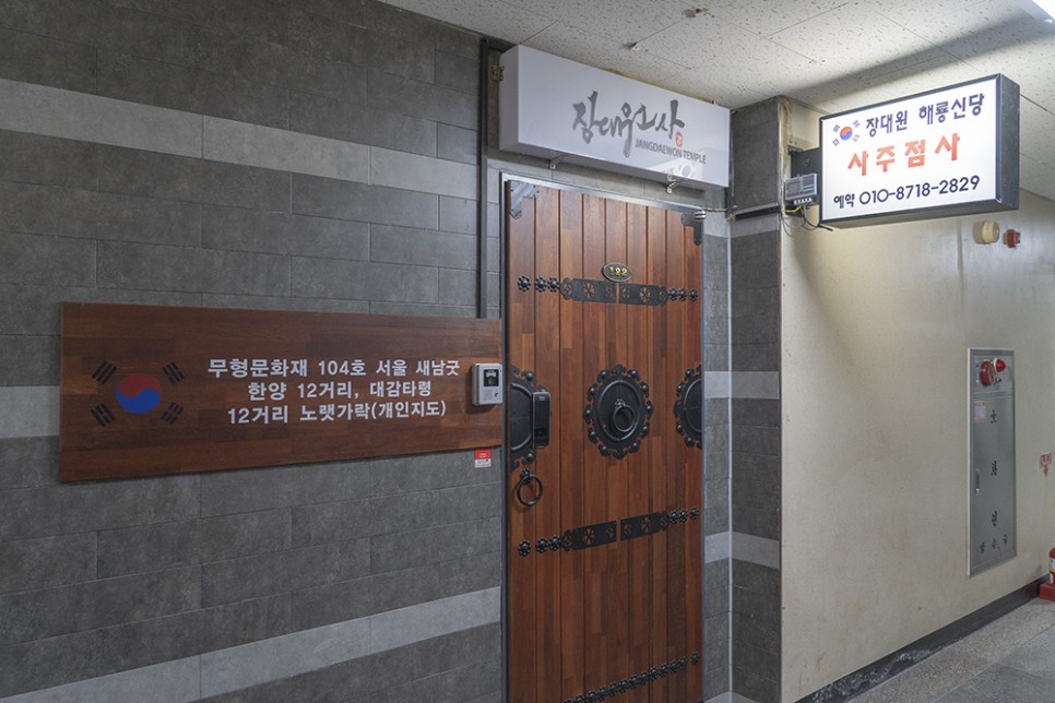수지골드플라자 3층에 있는 장대원사 해룡신당 입구의 대문이 독특해서 쉽게 찾을 수 있었어요.