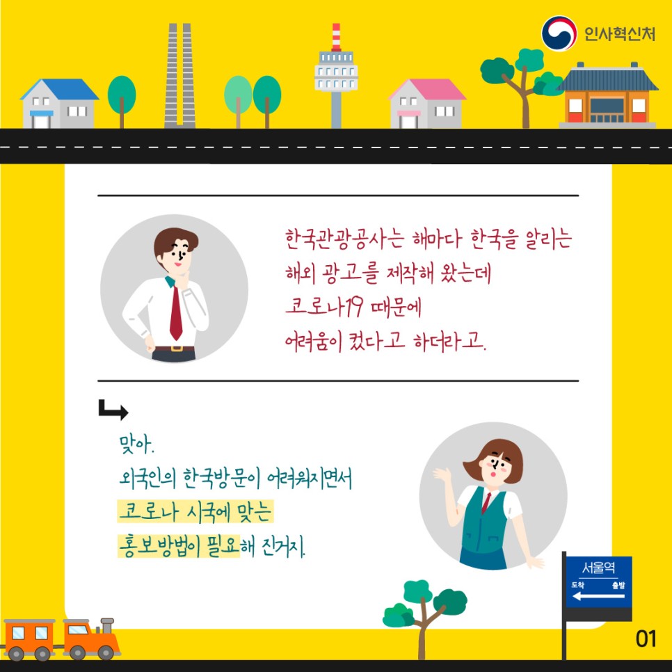 맞아. 외국인의 한국 방문이 어려워져서 코로나 시국에 맞는 홍보 방법이 필요해졌어.