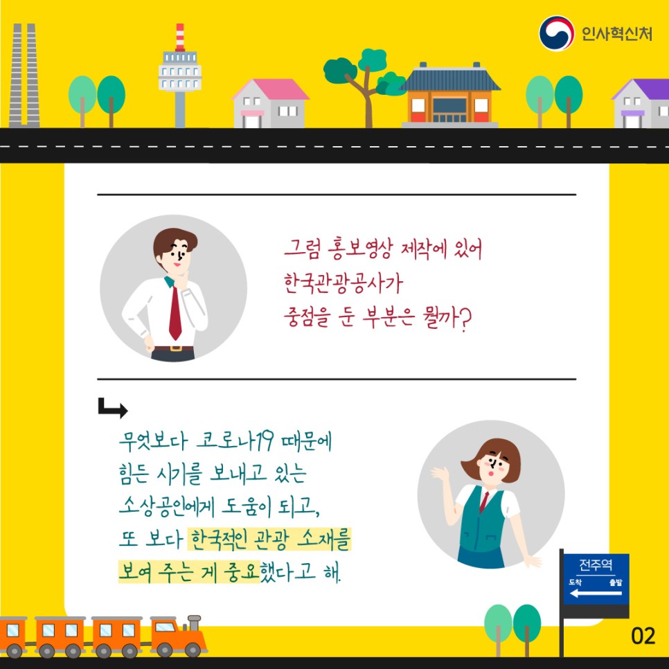 무엇보다 코로나19 때문에 힘든 시기를 보내고 있는 소상공인에게 도움이 되고, 또 보다 한국적인 관광 소재를 보여주는 것이 중요했다고 한다.