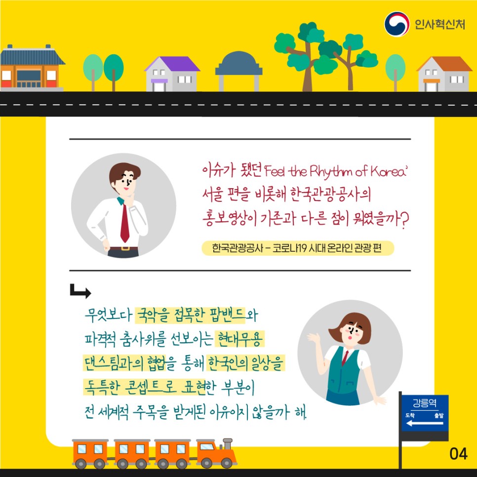 화제가 됐던 ‘Feel the Rhy thm of Korea’ 서울편을 비롯한 한국관광공사의 홍보영상은 이전과 무엇이 다른가.