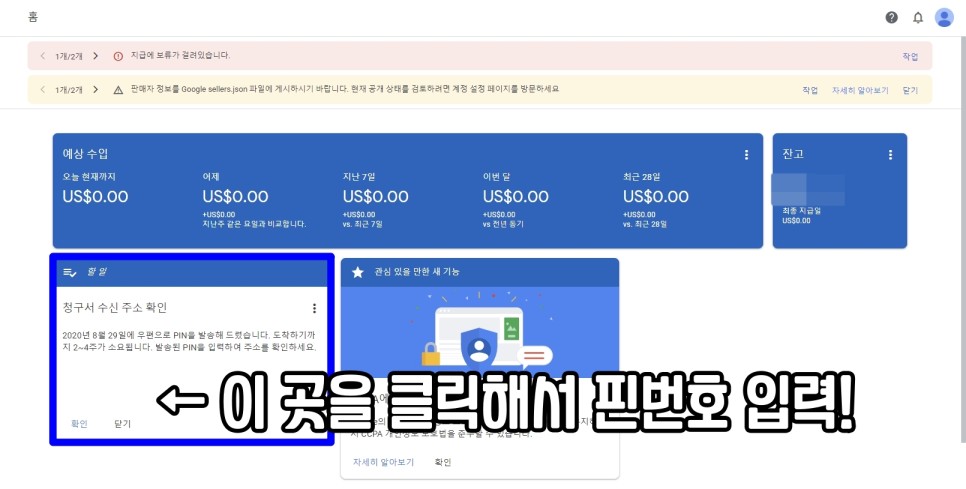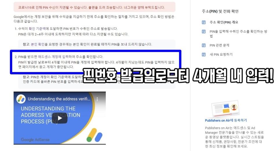 구글 애드센스 유튜브 핀번호가 있는 우편