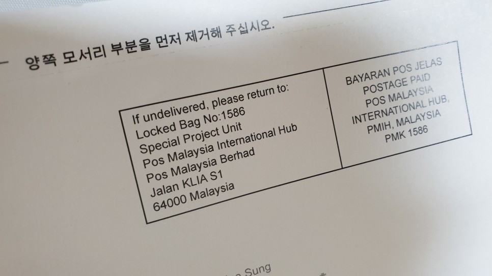 양 끝을 먼저 제거하듯이 말하고 살며시 떼어줍니다. 강력한 접착제와 같은 것으로 확실히 붙어 있어요. 혹시나 숫자 부분이 찢어질까봐 조심스럽게 뗐어요.