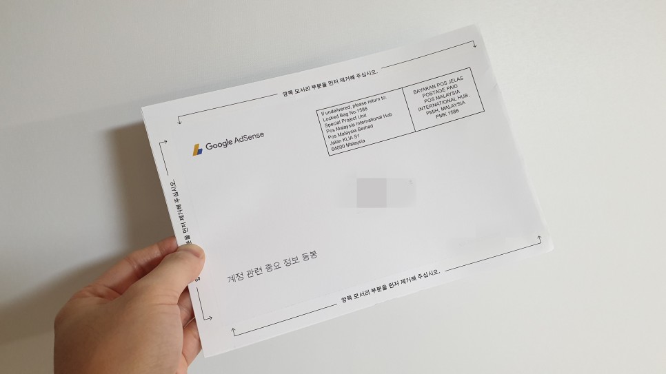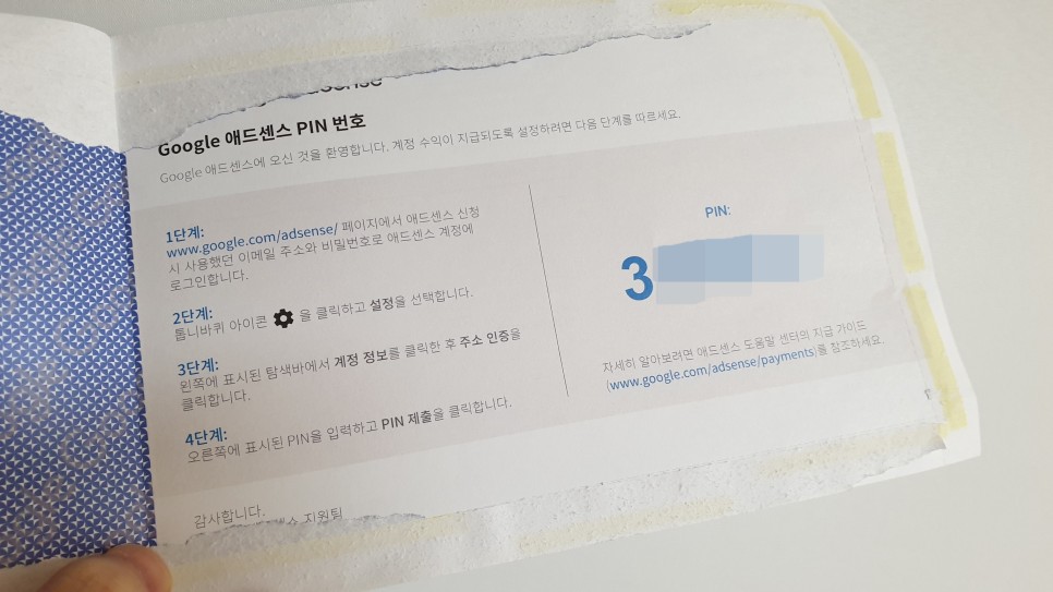 구글어드센스가 보낸 우편물이 생각보다 얇아서 놀랐어요. 그래도 중요한 숫자 여섯 자리가 적혀있는 문서지만 비에 젖거나 바람에 날리면 사라질 것 같은 종이 한 장이 멍해져요.