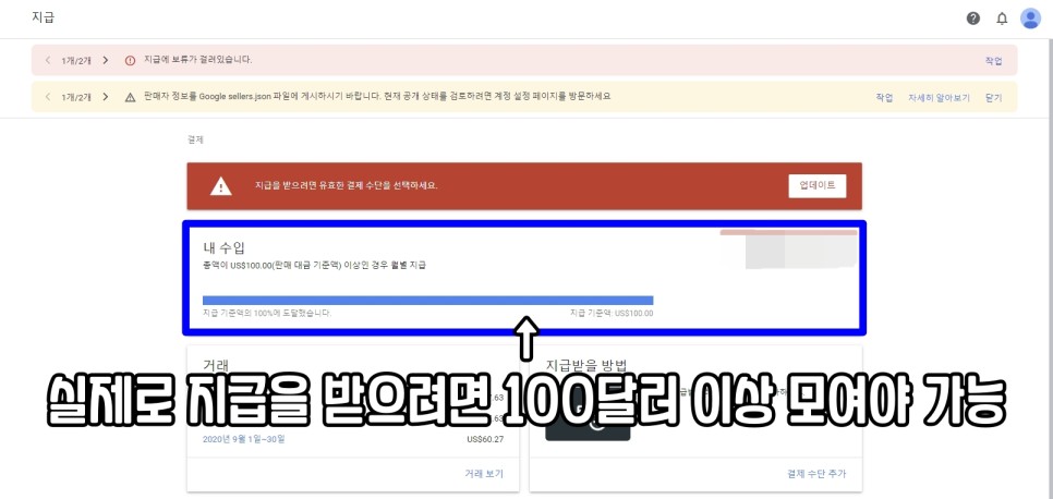 실제로 지급을 받으시려면 100달러 이상의 수익이 쌓여야 지급받을 수 있습니다. 그래서 번호만 입력해도 되는 것이 아니라, 100달러가 적립될 때까지 기다렸다가 실제로 내 통장에 돈을 받을 수 있다는 것입니다.