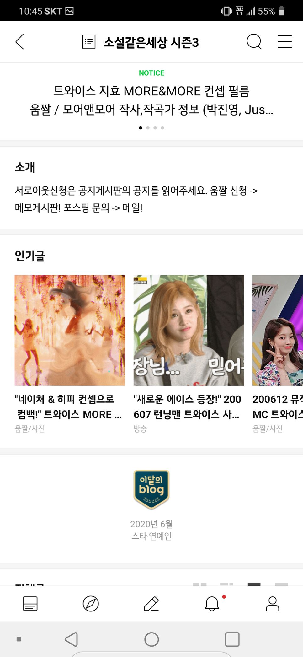 어쨌든 팬이 된 것은 식스티, 우아하게, 치어업 때는 글을 몇 개 올리고 나서, 본격적으로 포스팅을 시작한 것은 2016년 10월이었습니다.TT 티저 포스팅부터 이 분야를 열심히 배웠습니다4년간 꾸준히 포스팅을 해왔던 것이 이번 달 블로그에 선정되는 데 영향을 주지 않았나 싶습니다.