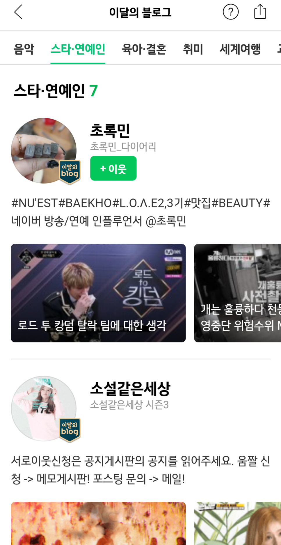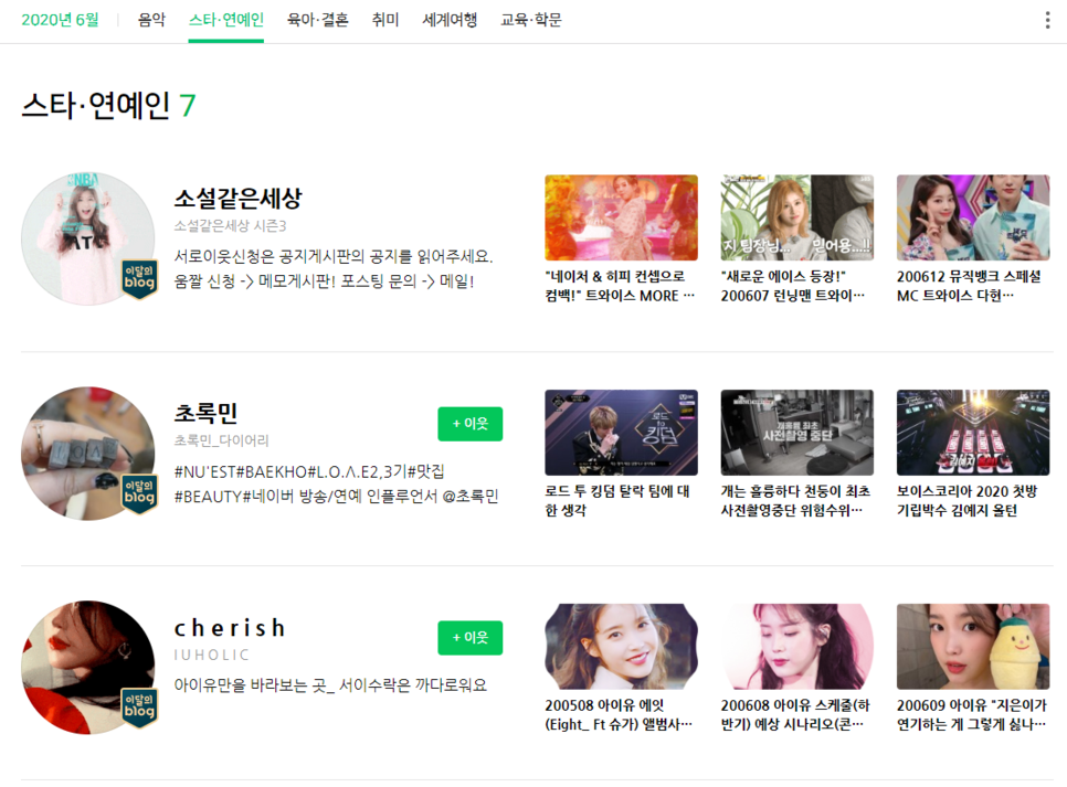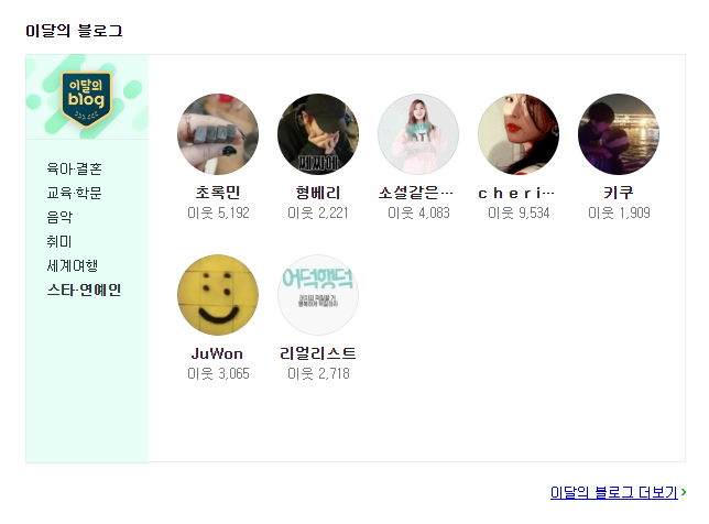저는 그래서 스타 연예인을 다루는 블로그는 이번 달 블로그에서는 선정하지 않을 거라고 생각했습니다.