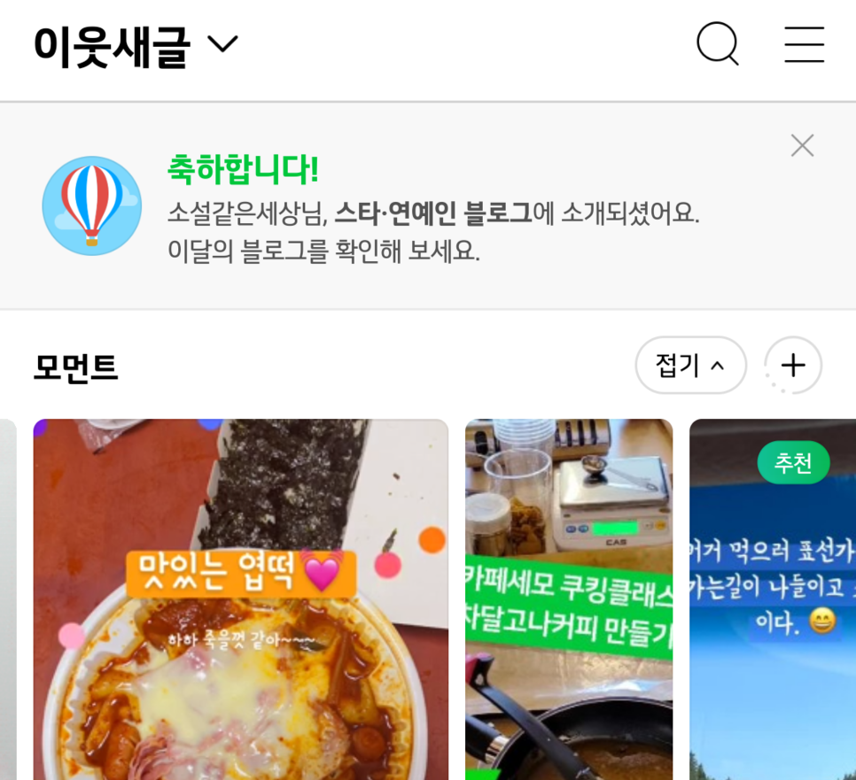 블로그 어플 들어오자마자 이렇게 나와서