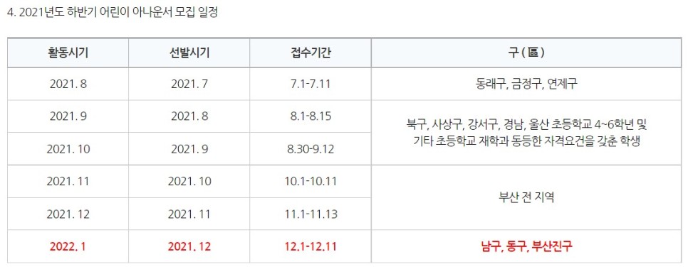 영어를 좋아하고 뉴스 및 토론에 관심이 있는 부산지역 남구, 동구, 부산진구초등학교 4~6학년 친구들은 부산영어방송 어린이 아나운서에 도전해 주시기 바랍니다.
