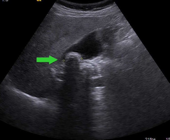 담석의 복부 초음파 영상 초음파 소견에서 놓치지 말아야 할 것은 음향 그림자(acoustic shadow)입니다.