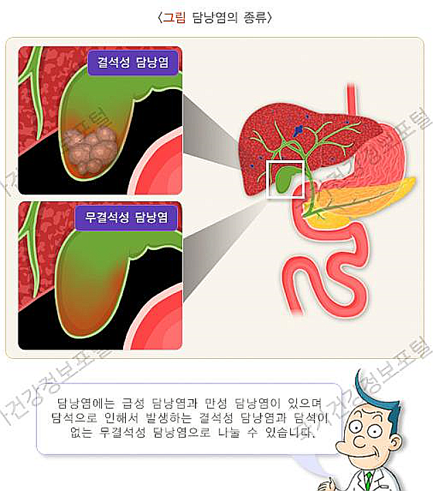 따라서 막힌 것이 찢어지게 되면 통증이 없어질 수도 있습니다. 그리고 이로 인해서 이차적인 세균 감염이 일어날 수 있는데 이때는 여기에 염증이 생겨서 담낭염 같은 병이 생기게 됩니다. 특히 급성으로 나타나 심각한 상황에서는 응급수술을 할 수 있습니다.