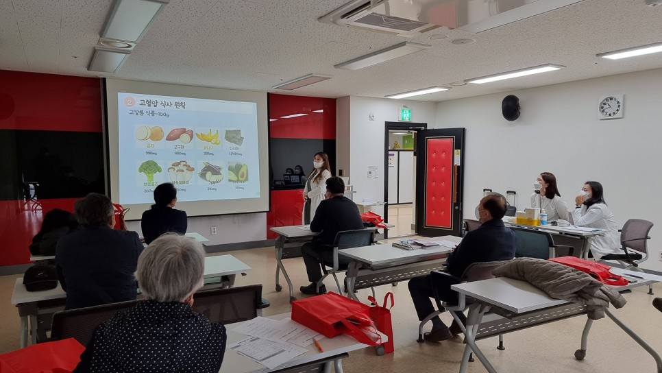고혈압 관리의 3대 요건 중 식생활에 대한 교육은 세종시보건소 다카마쓰엔 영양사가 해주셨습니다여러가지 그림이나 도표, 사진등을 사용해서 즐겁게 설명해주시고, 이해하기 쉬웠습니다.
