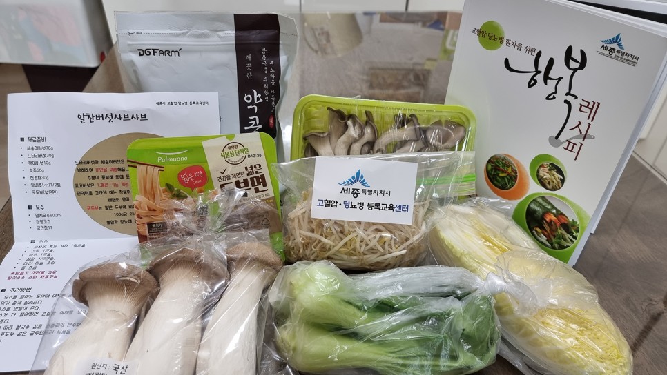 교육에 참여한 분들께는 여러 가지 선물이 주어졌습니다건강에 좋은 알찬 버섯 샤브샤브 재료를 쇼핑백에 모두 담아 행복한 레시피 책까지 나눠주셨습니다.정말 건강에 좋은 것들만 다 들어있네요.