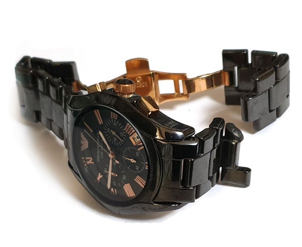 아르마니 시계의 세라믹 끈이 충격에 의해 파손되어 입고된 세라믹 시계줄 중간부분이 파손될 경우 핀구멍이 없어 분리가 불가능하며 보통 시계줄 전체를 교체하는 경우가 많습니다 시계줄 전체 교체시 비용부담이 많이 발생하므로 저희쪽으로 보내주시면 파손부분만 수리 가능하여 비용이 대폭 절감됩니다