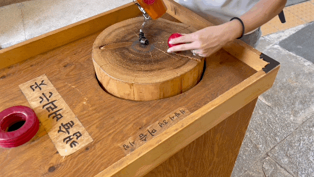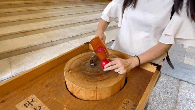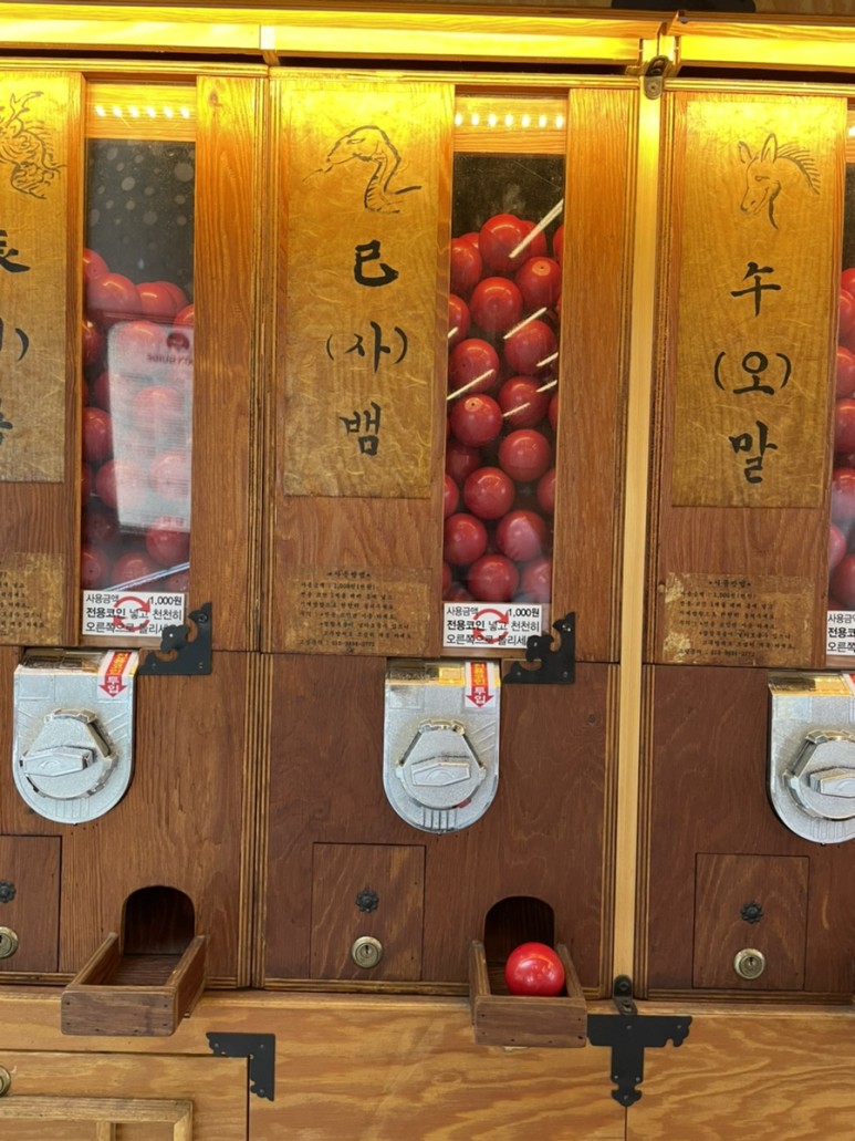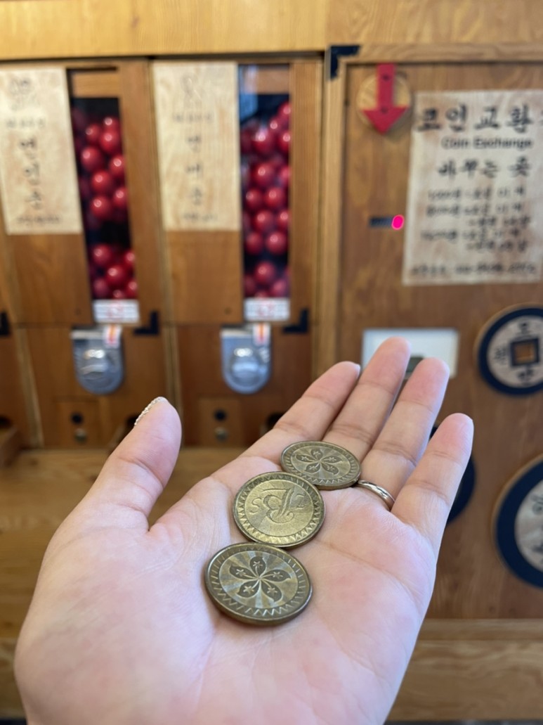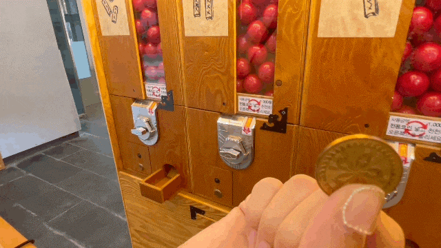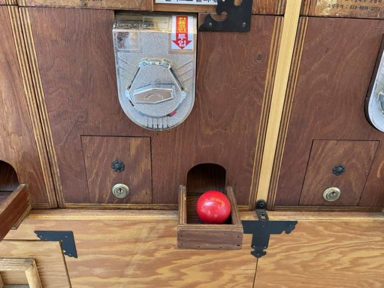 동전을 넣고 레버를 돌려보면 이렇게 빨간 공이 나오네