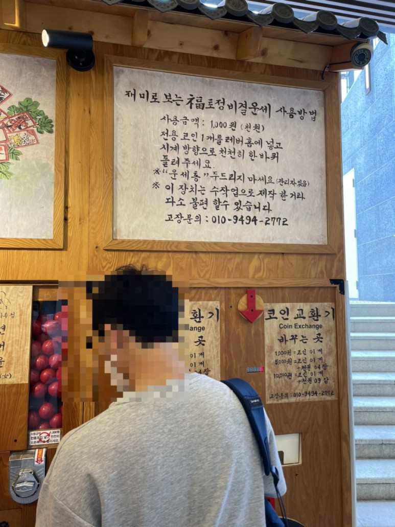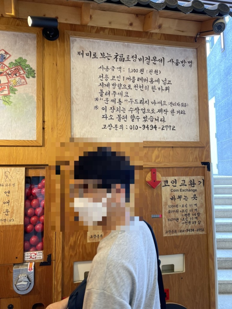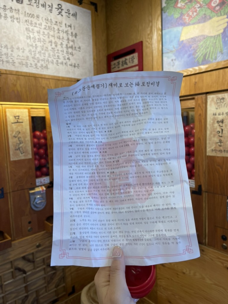 #안녕 인사동 골목 1층에 있던 재미로 보는 토정비결점 제비뽑기 기계다.