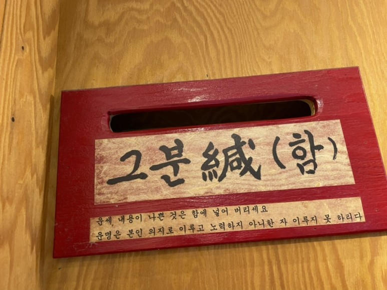 나쁜 운세도 있는 것 같아! 저런 상자를 비치해 놓은 걸 보면!