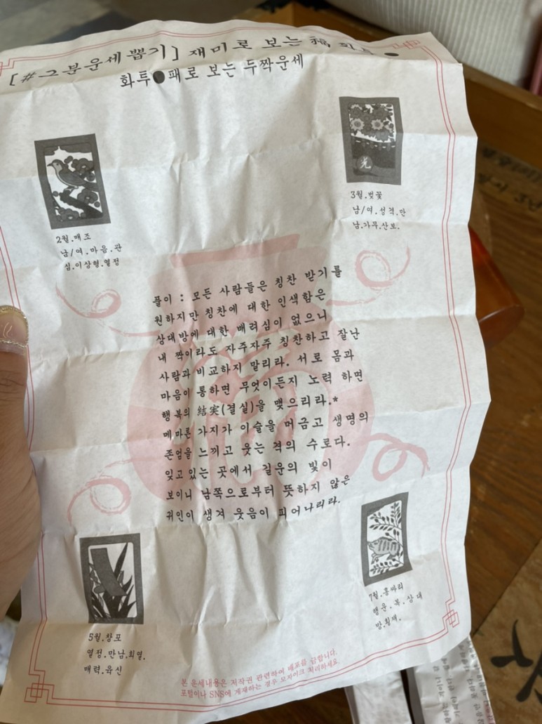 아무튼 재밌게 놀고 서로 운세도 보고 오랜만에 신나게 놀았다. ㅎㅎㅎ